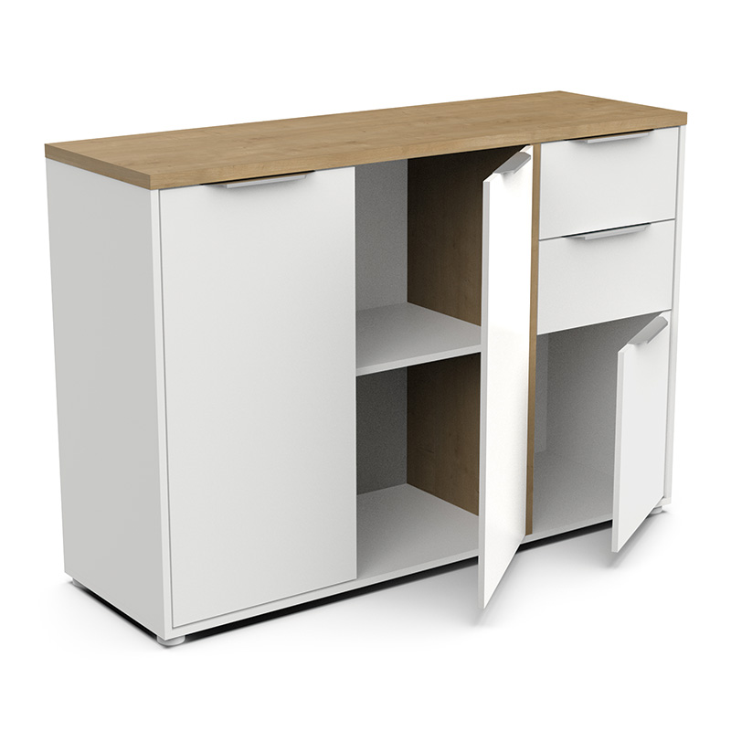 Aparador 120cm com 3 portas e 2 gavetas. Armazenamento prático com 3 portas e 2 gavetas.