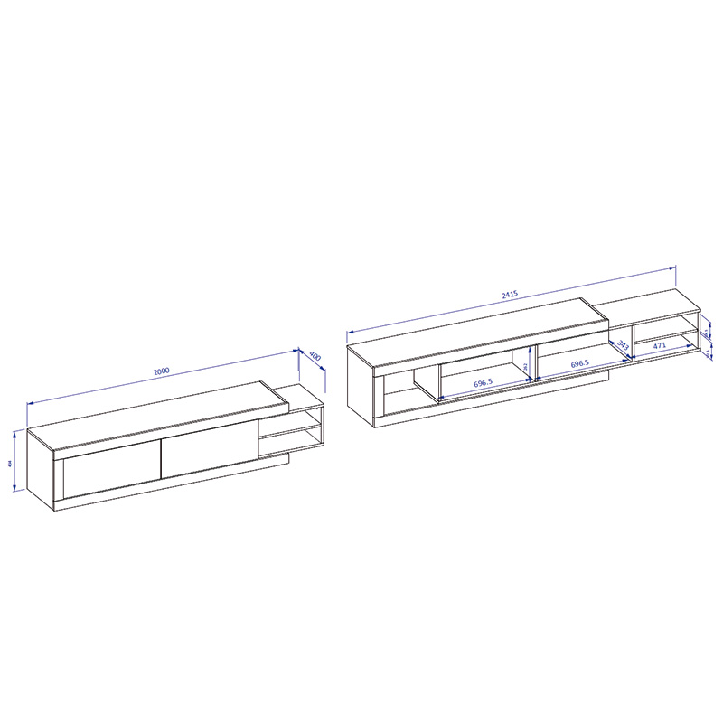 Base TV extensível até 242cm, composto por 2 portas basculantes e 2 nichos.