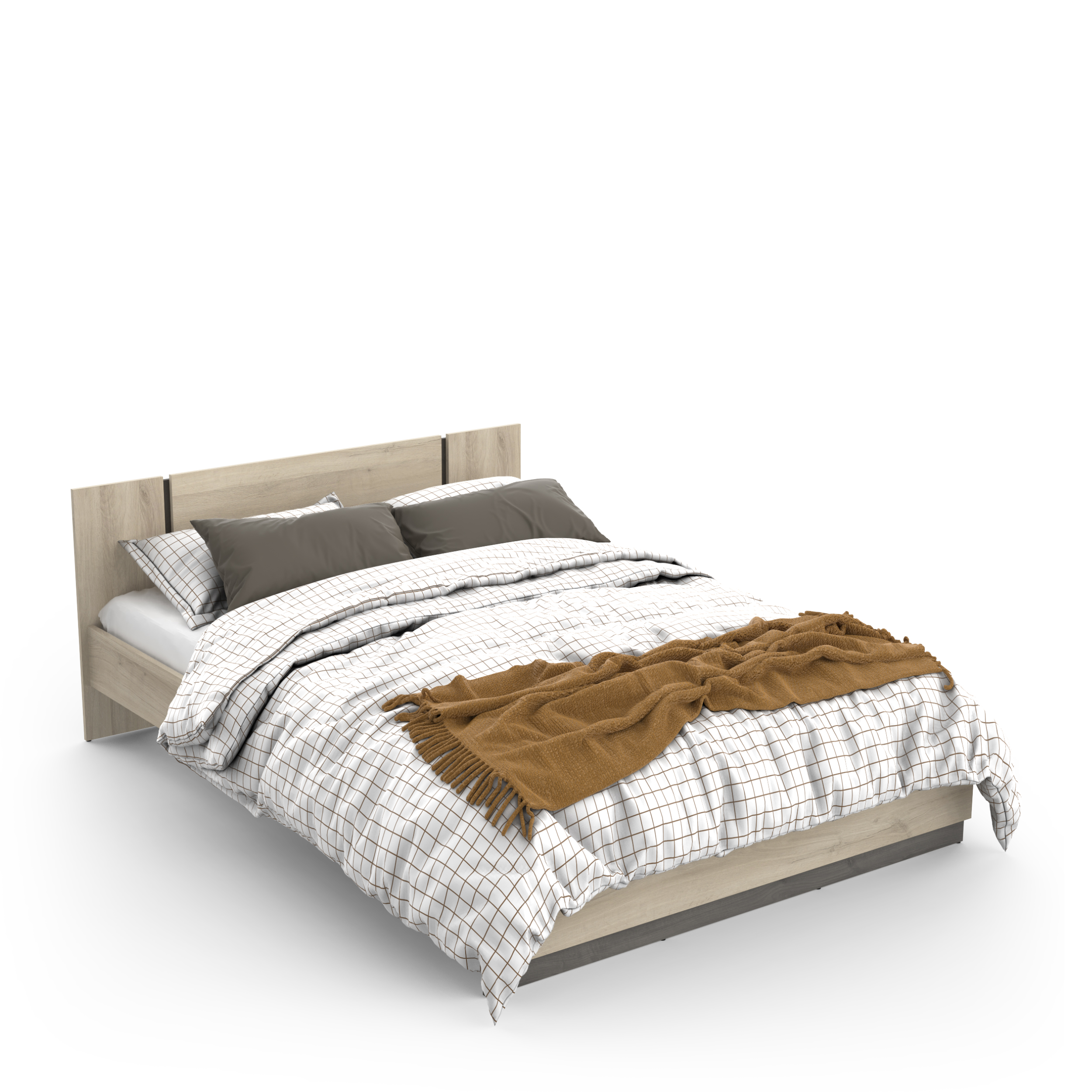 Cama de casal 140×190 cm. Material: Placa laminada 15 mm.