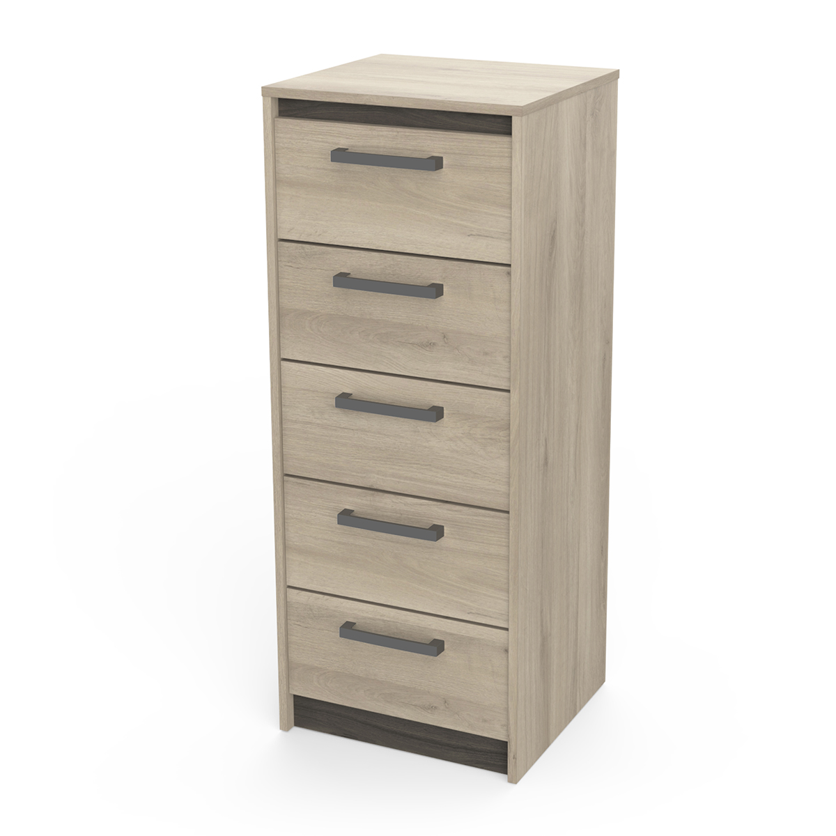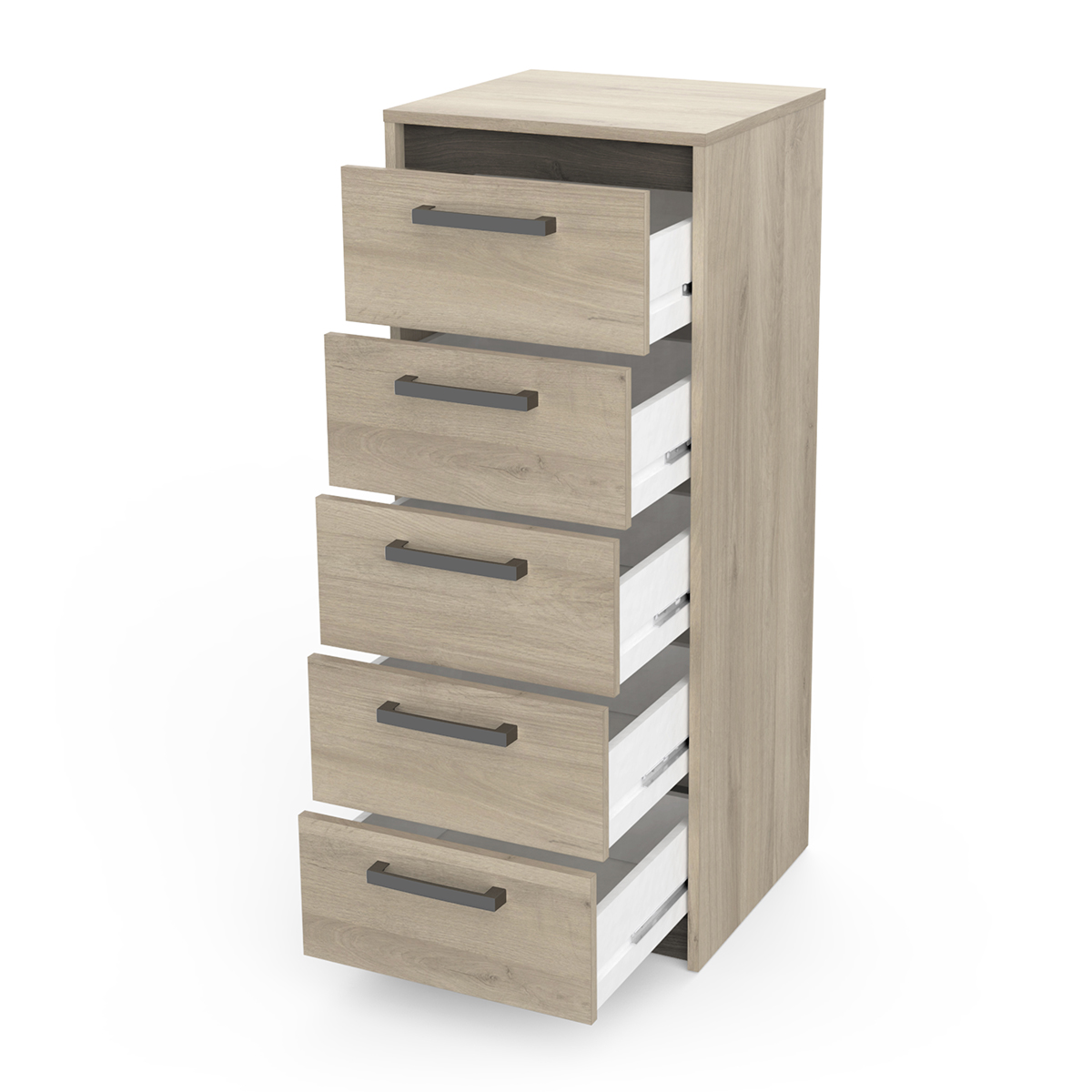 Camiseiro com 5 gavetas fácilmente extraíveis com corrediças. Espírito contemporâneo destacado por um toque de madeira escura. Características principais: Gavetas de fácil extração com corrediças de roletes. Grande capacidade de arrumação. Estilo contemporâneo realçado por um toque de madeira escura.