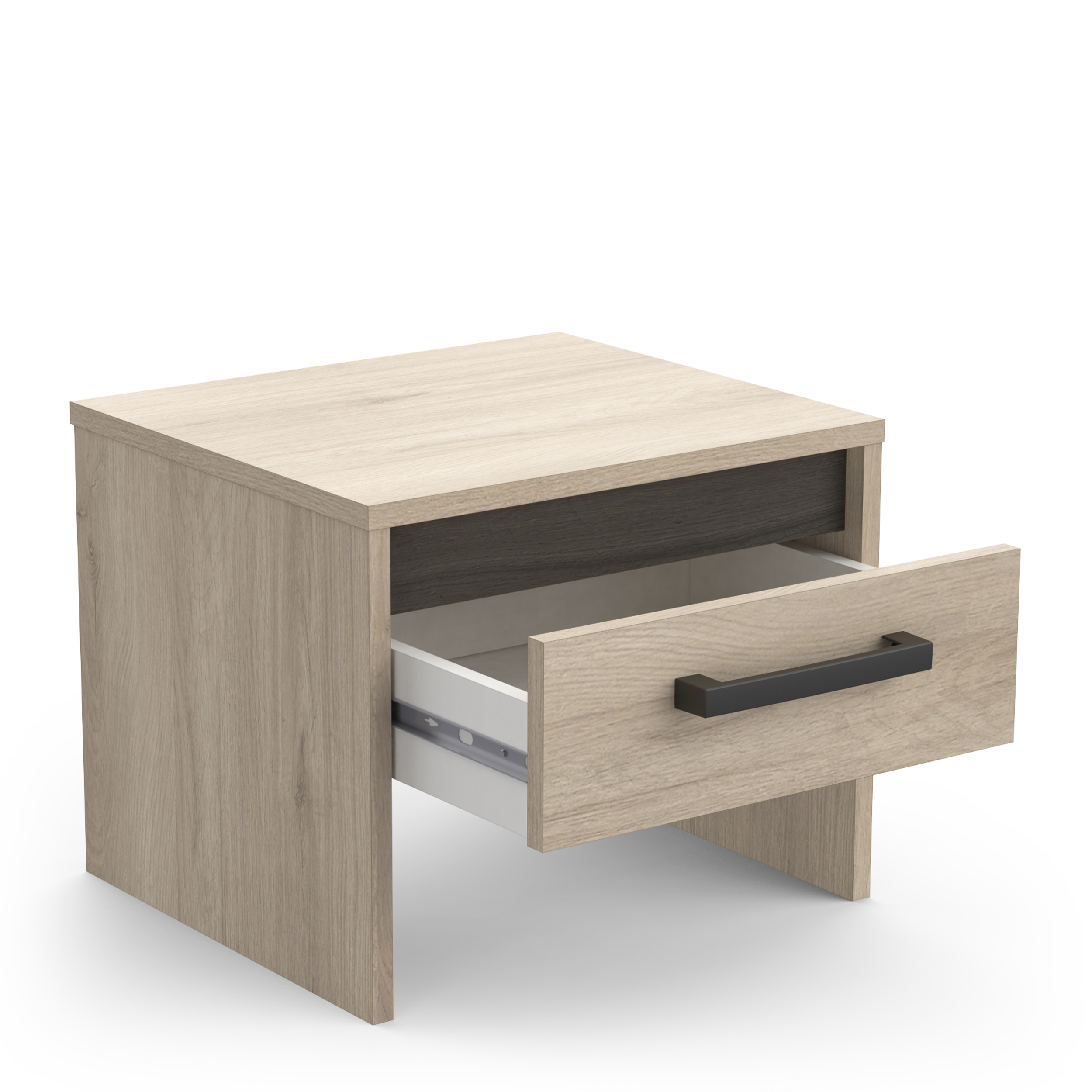 Mesa de cabeceira com 1 gaveta. Espírito contemporâneo realçado por um toque de madeira escura.
