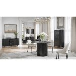 Mesa de jantar fixa de 120cm. Com seu design redondo e moderno, esta mesa acomoda confortavelmente de 4 a 6 pessoas, tornando-a ideal para reuniões familiares ou jantares com amigos.